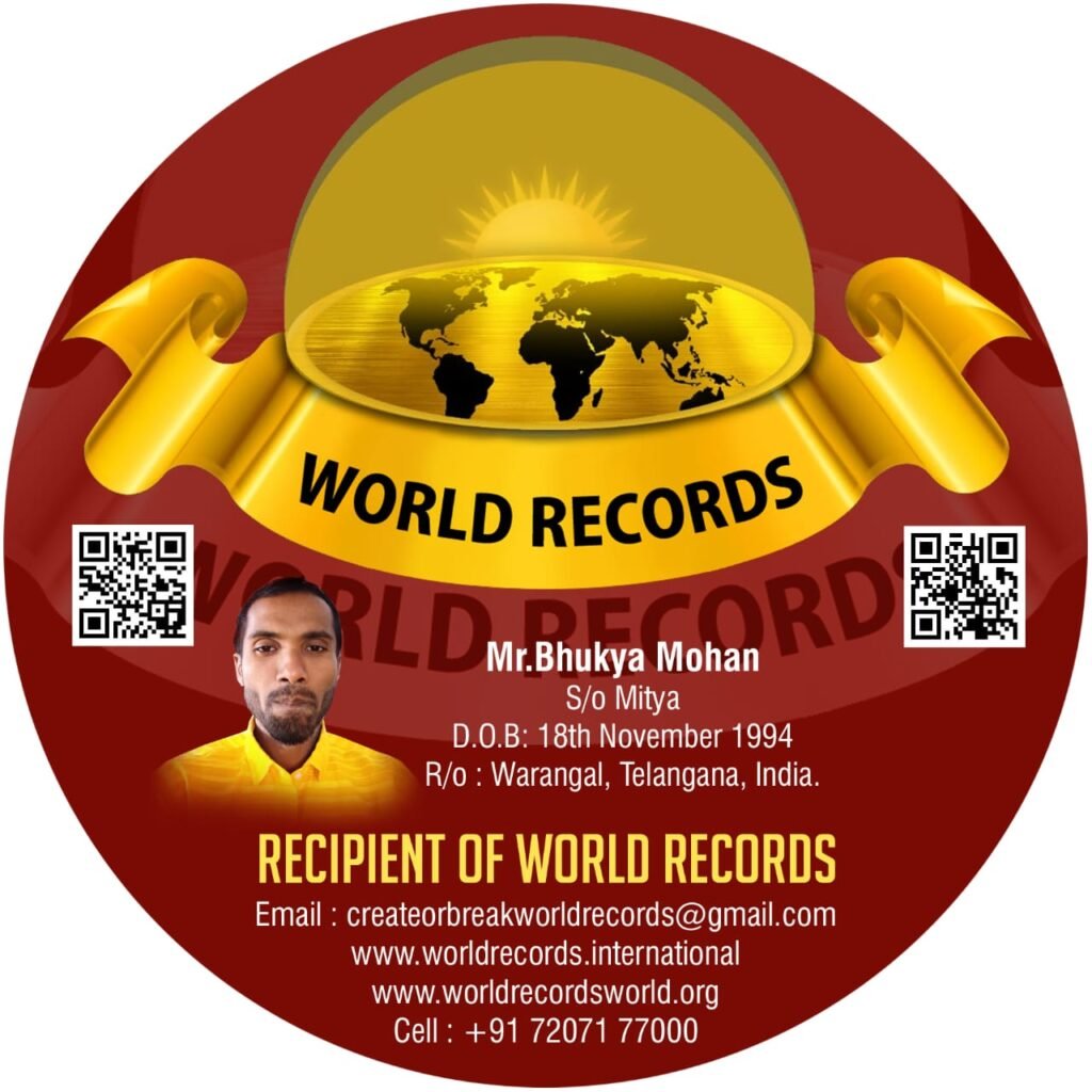 Mr. #Bhukya #Mohan #bhukyamohan #achieved #4 #four #World #Records #worldrecords